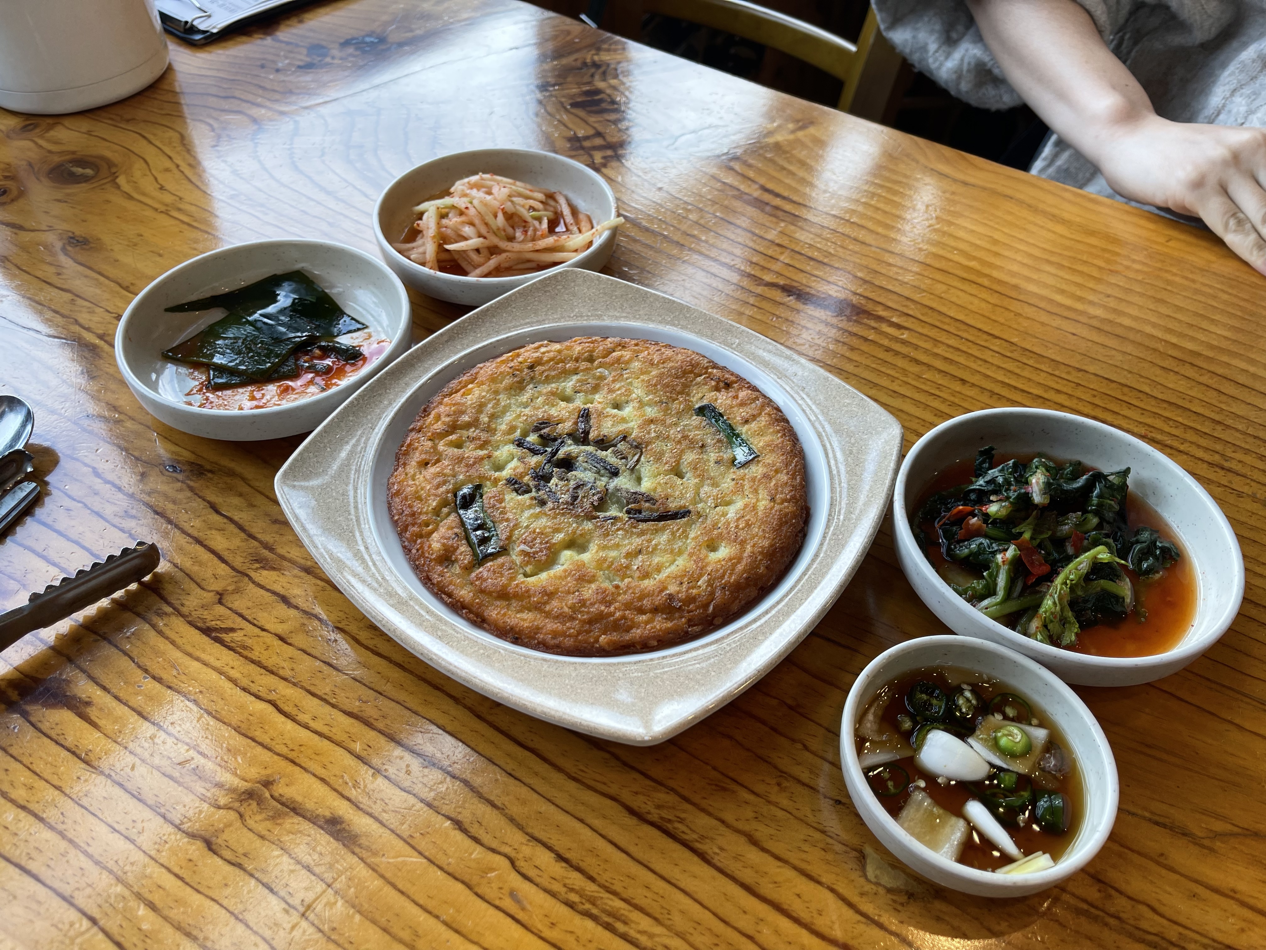 먼저 나온 메뉴는 녹두전. 겉은 노릇노릇 바삭하고 속은 촉촉해서 고소한 풍미가 입안을 가득 채워줬어요. 전 하나만으로도 정성스러운 한 끼의 시작이 느껴졌달까요?