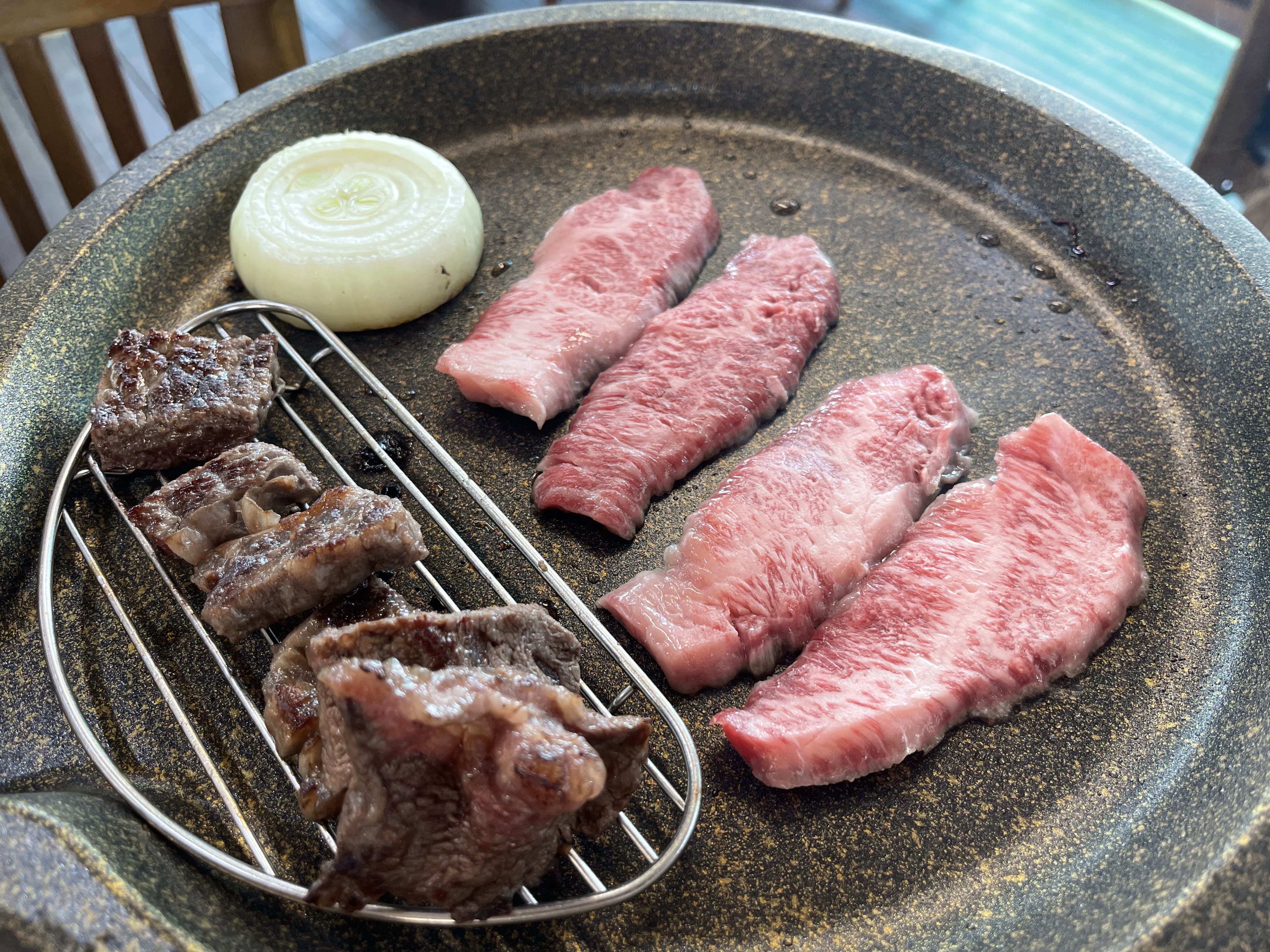 Every table is equipped with a grill, so you can cook your beef exactly how you like it.